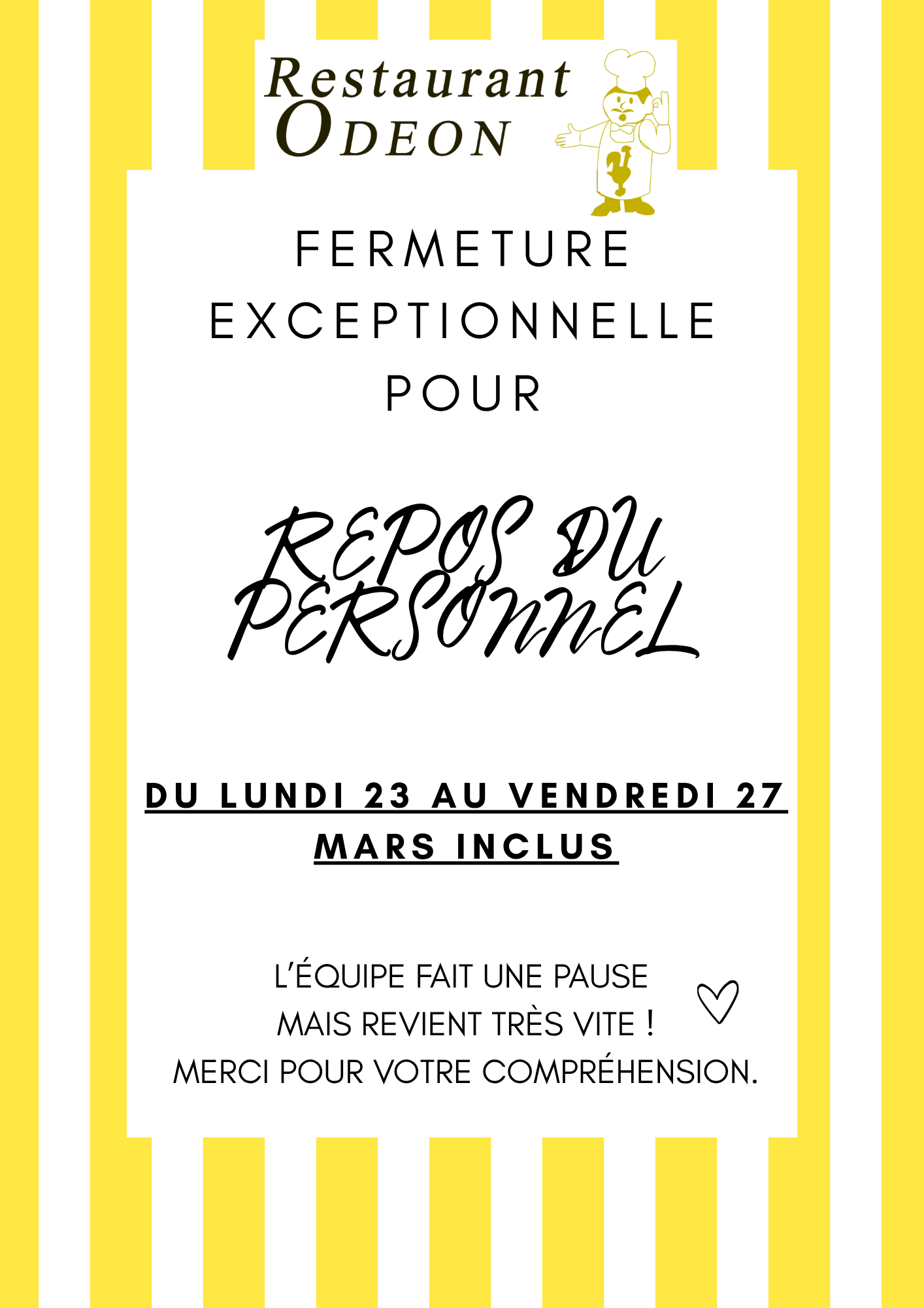 votre restaurant restera fermé exceptionnellement pour repos du personnel